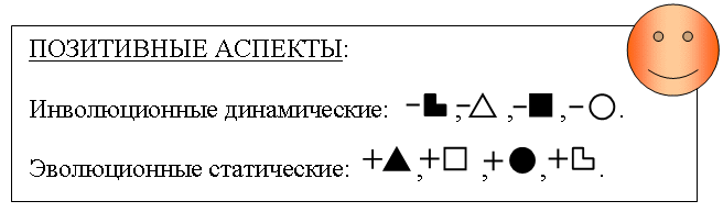 — ПОЗИТИВНЫЕ и НЕГАТИВНЫЕ аспекты можно рассматривать и как "клапаны переключения настроений и ощущений" — переключения состояний и режимов работы психических функций, регулирующих поступление информации на аспектное поле.